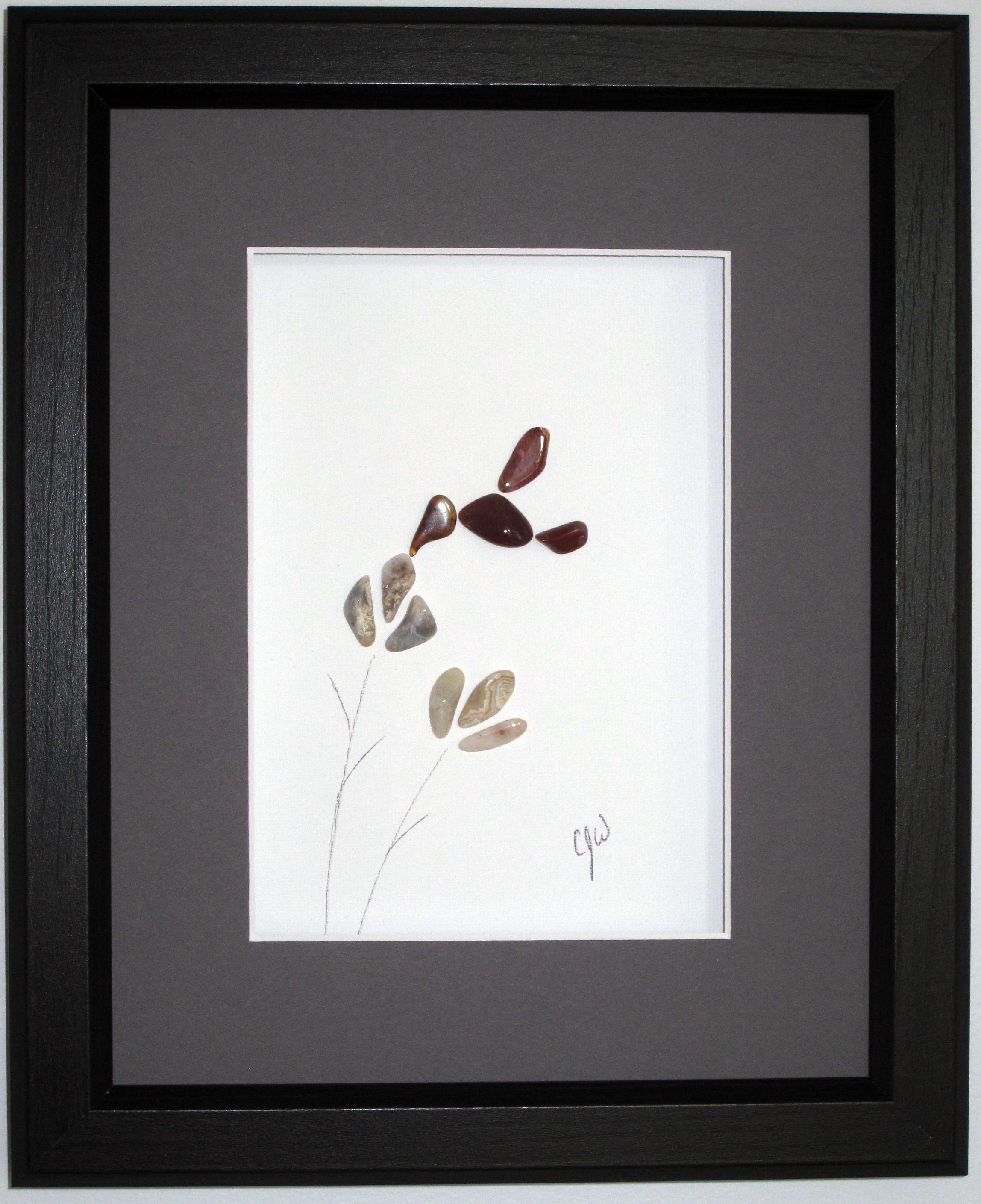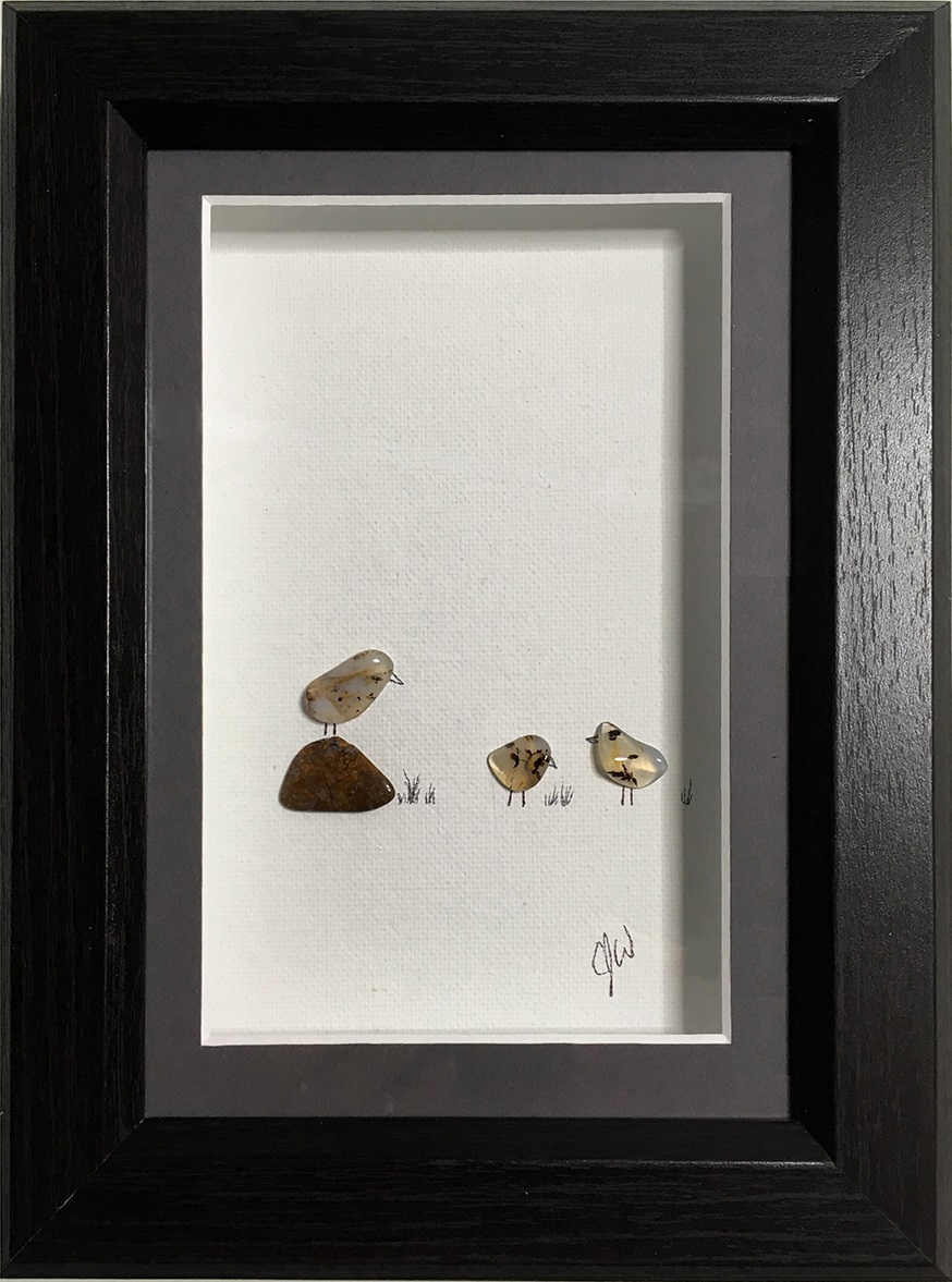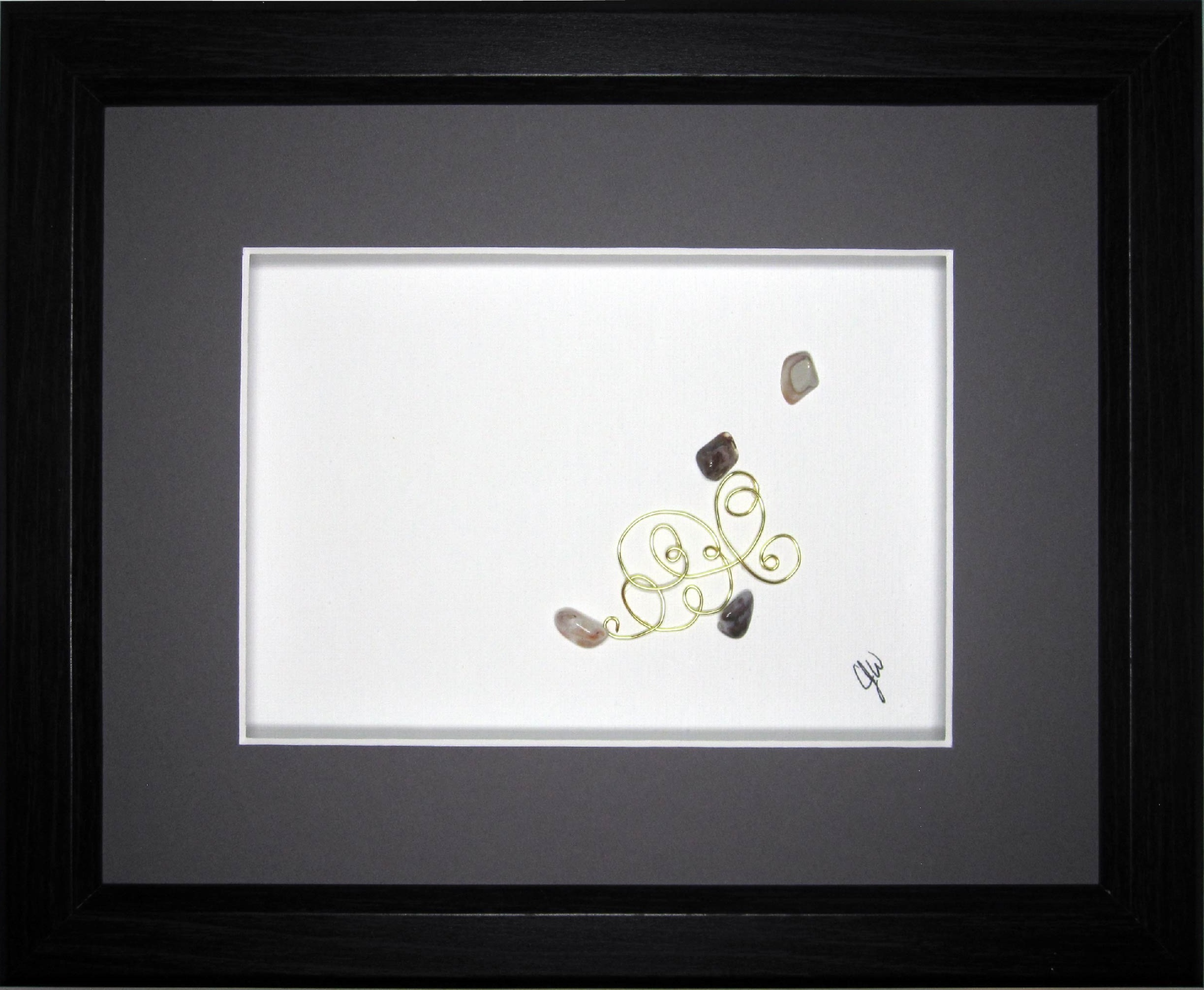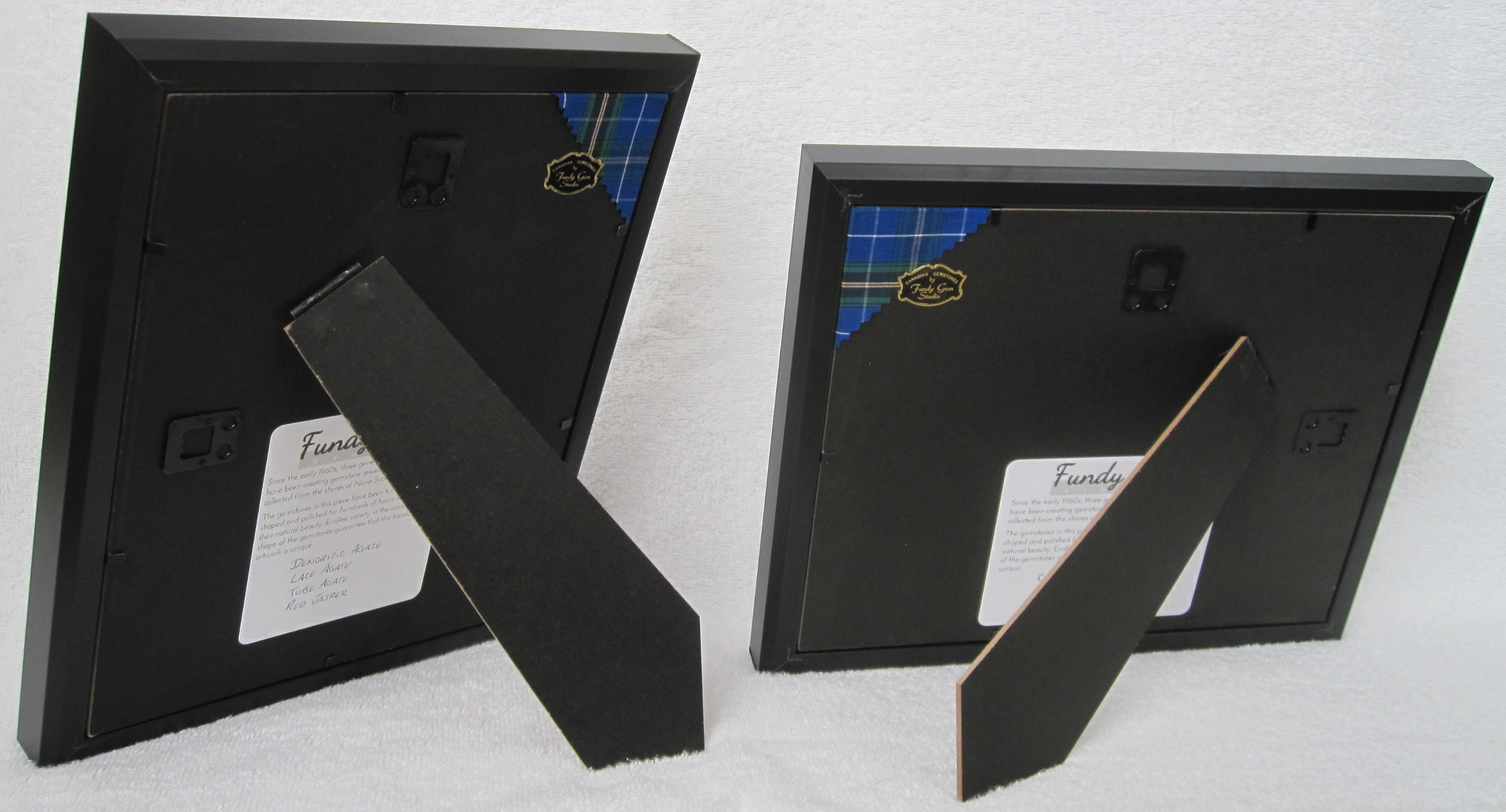 Each piece of art is matted in a neutral colour, framed in black, and displayed behind protective plexiglass. The frames have both an easel back and hanging hardware to give you multiple display options.