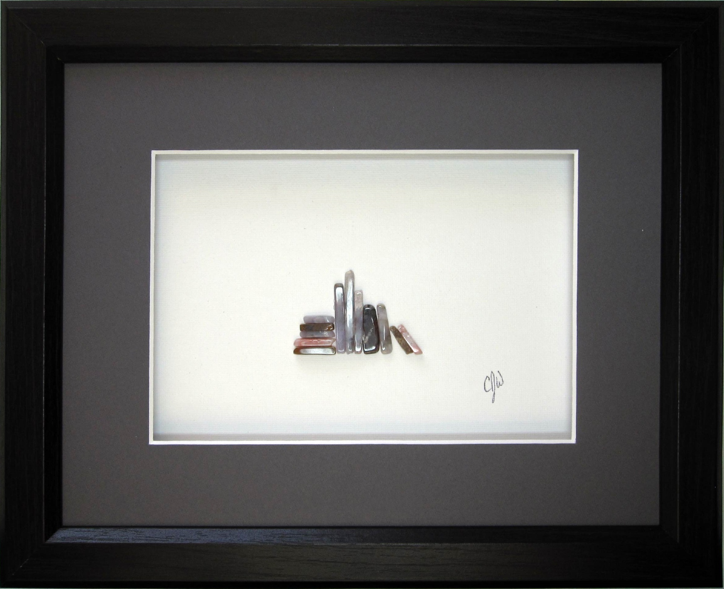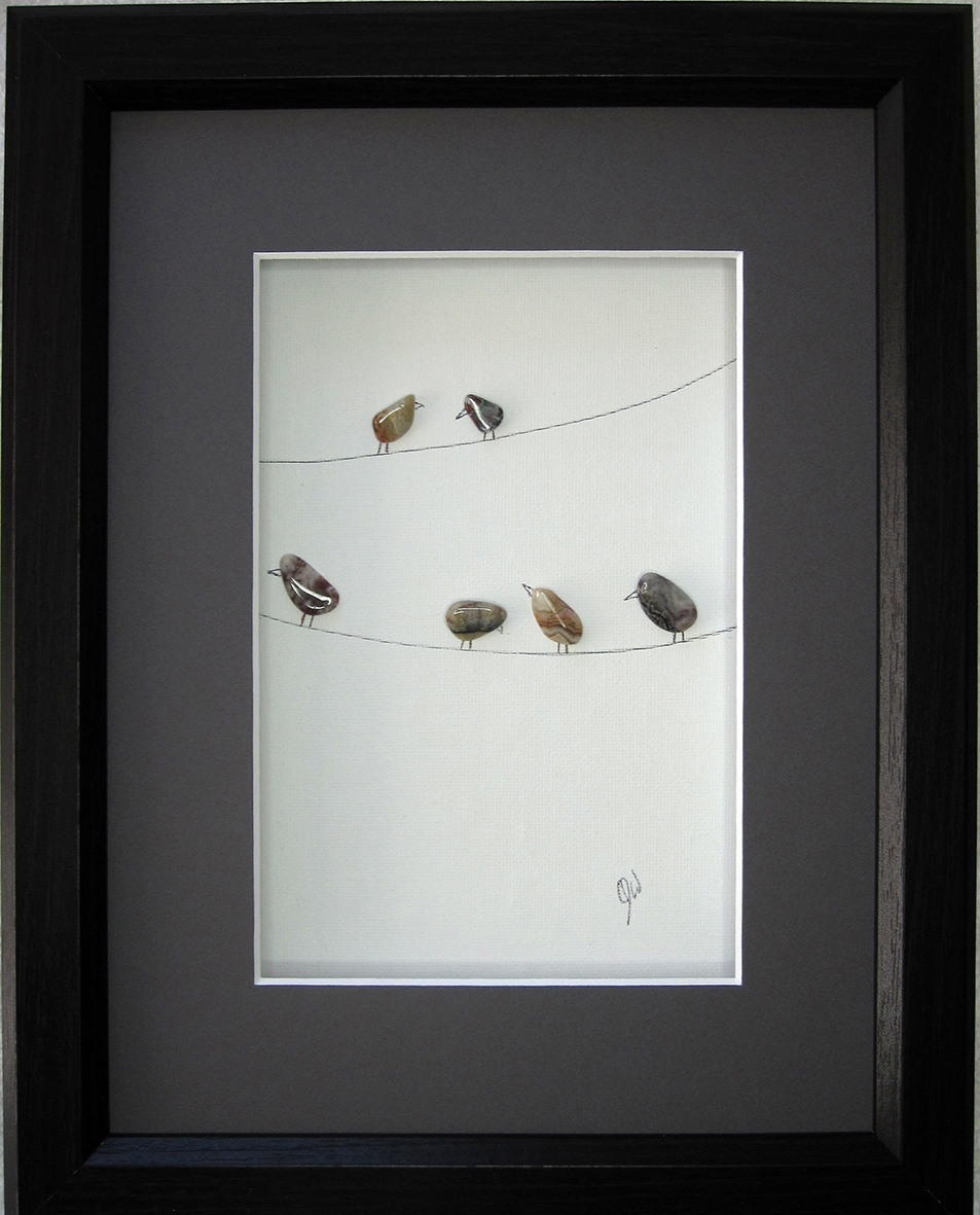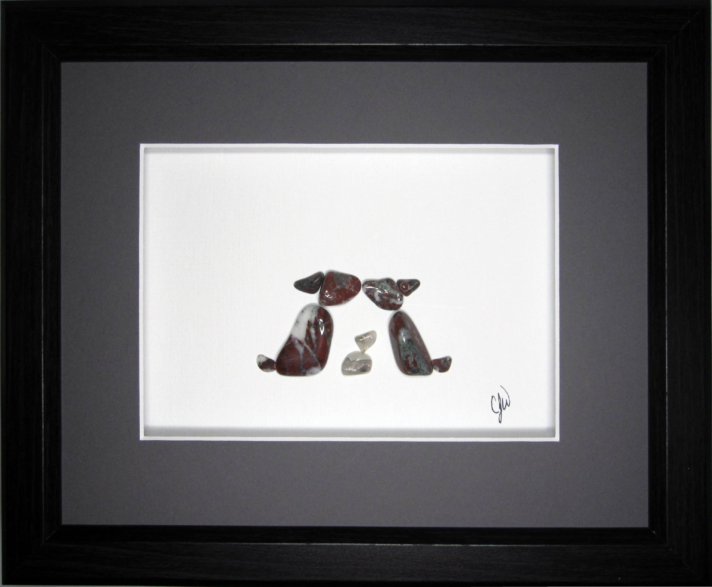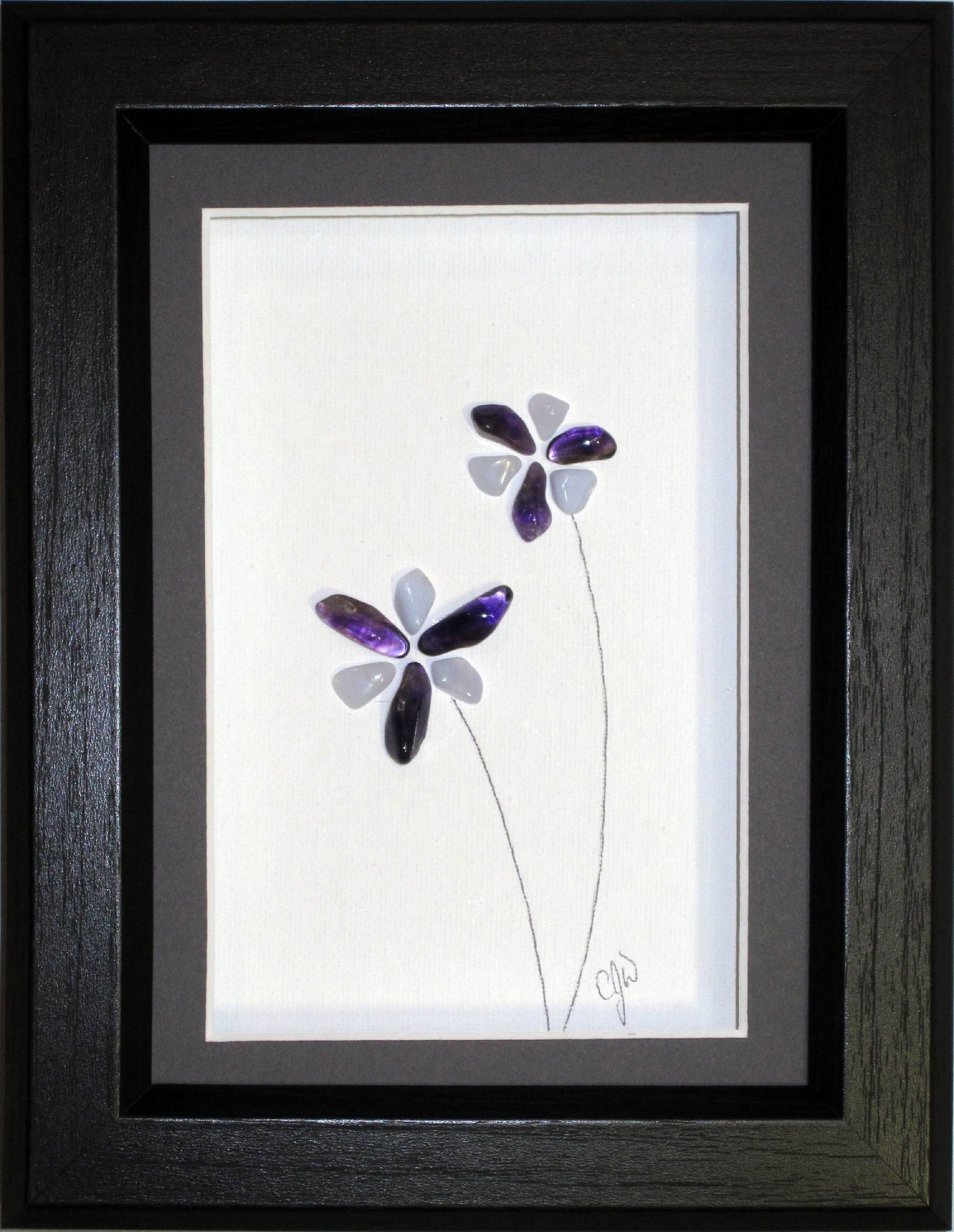 Each piece of art is matted in a neutral colour, framed in black, and displayed behind protective plexiglass. The frames have both an easel back and hanging hardware to give you multiple display options.