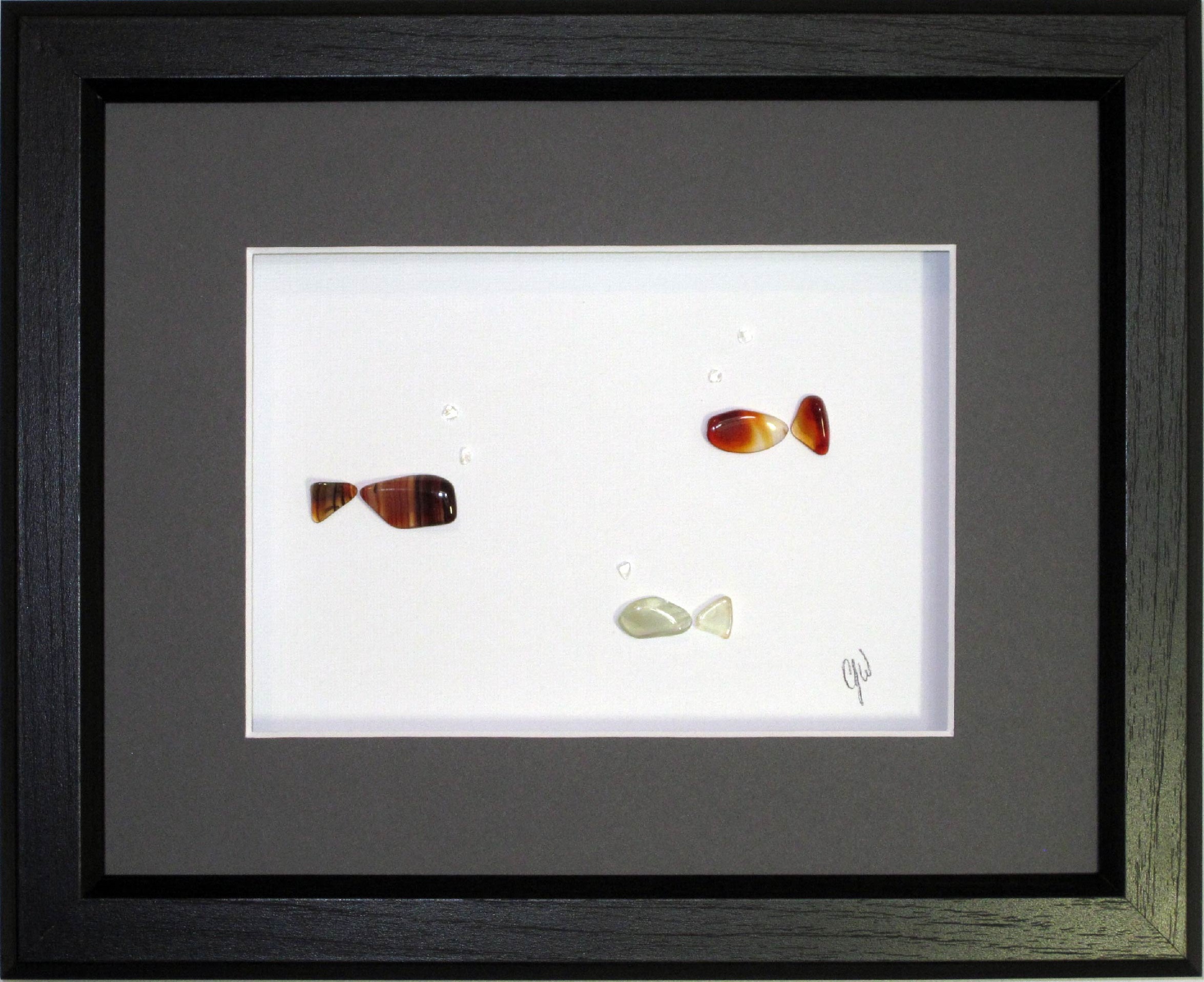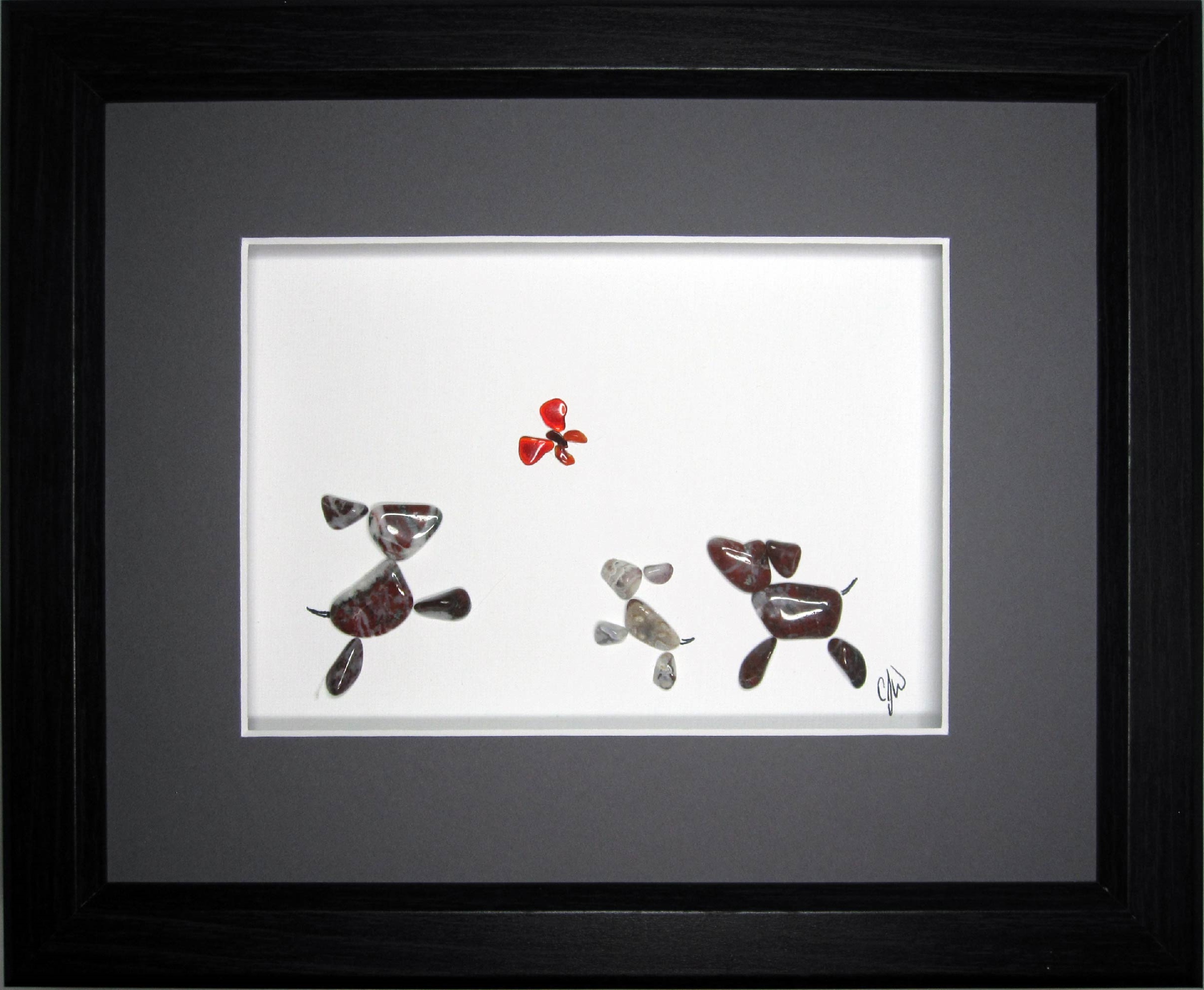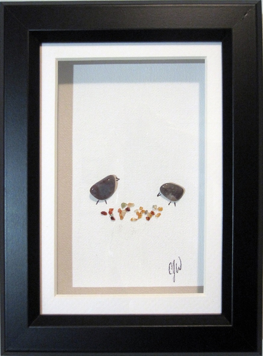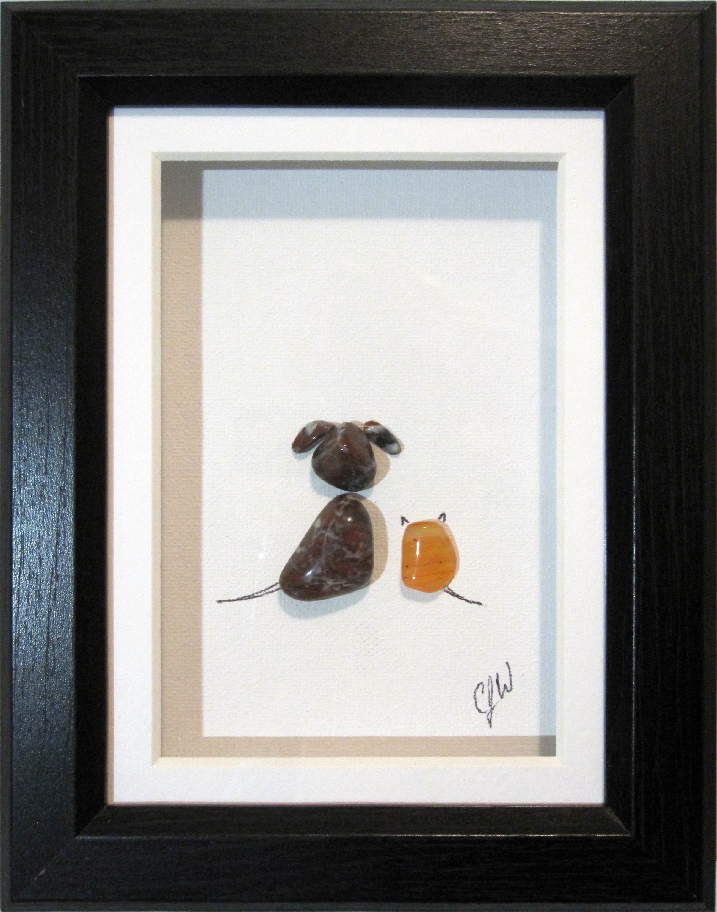 Each piece of art is matted in a neutral colour, framed in black, and displayed behind protective plexiglass. The frames have both an easel back and hanging hardware to give you multiple display options.